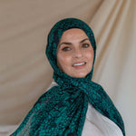 Escape into nature with this alluring forest green printed hijab. Our airy modal fabric will feel as light as falling leaves every time you put this hijab on, which will be a lot.