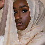 Our best-selling truffle mushroom color now reinterpreted as an effortless silk chiffon with warm, ivory hues. The non-slip texture of chiffon is combined with the shine of 100% pure silk to give you the best of both worlds. This pure Ombre Silk Chiffon Hijab offers an elegant look with the perfect balance of shine and comfort. The luxurious Truffle Ombre Silk Chiffon provides a soft, breathable drape, making it your perfect silk chiffon hijab.